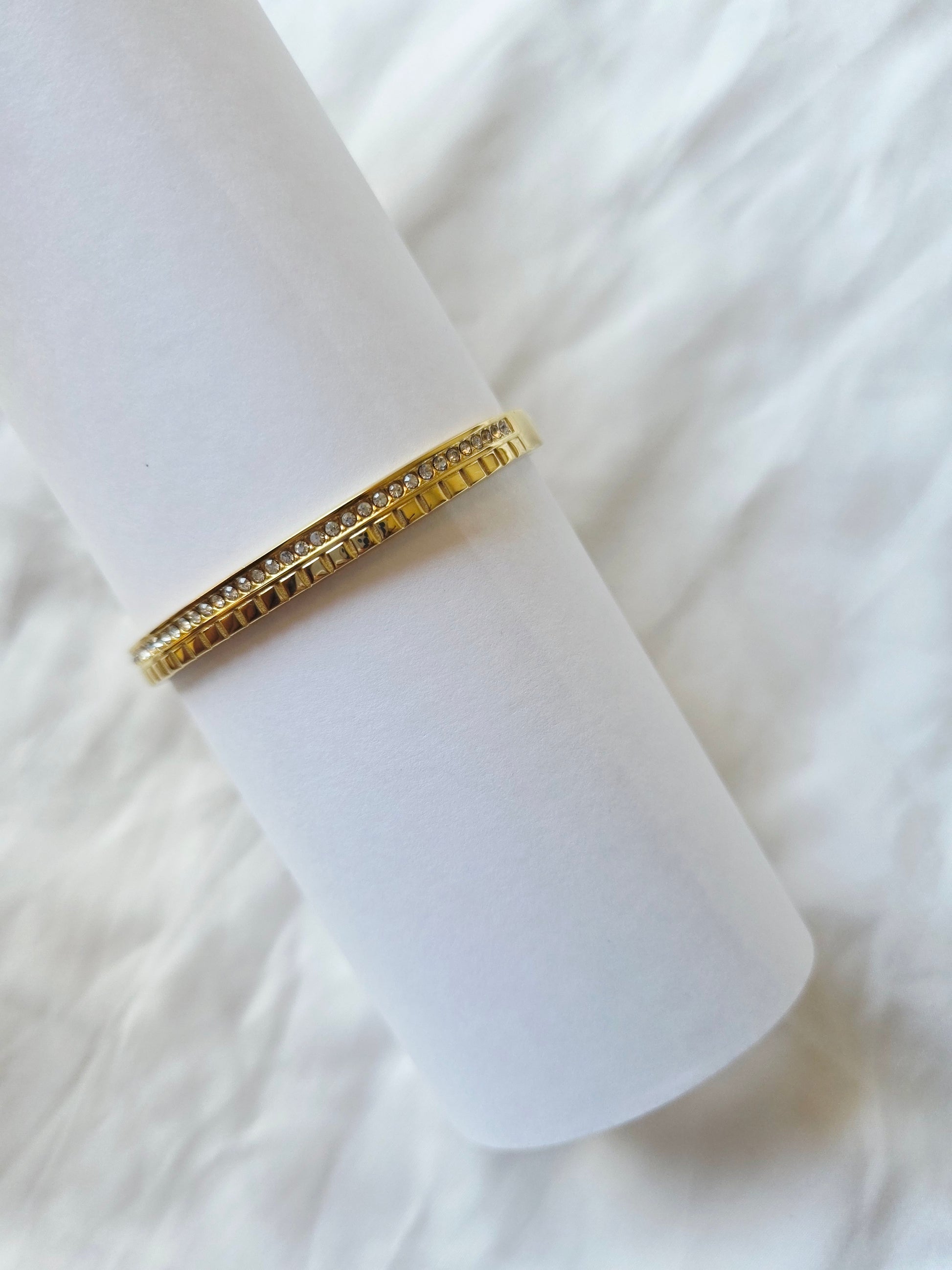 Size : Large / Free Size – Suits most women with medium to broad wrists or fuller hands. This size is versatile and designed for a comfortable fit. Bold meets timeless in our stackable wrist bands. Made with stainless steel and finished in radiant gold, they’re designed to resist tarnish and water while remaining gentle on sensitive skin. Sleek, stylish, and built to last.